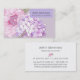 Elegant and modern style floral business cards in a traditional shape feature a color peony and hydrangea with your name or company name and title displayed on a sheer lavender lilac overlay. Add your full contact information to the reverse side. Perfect for wedding planners, event planners and other special occasion professionals.