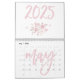 Modern wall calendar 2025 with beautiful illustrations of roses and pink script text written inside the calendar.