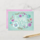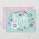 This elegant thank you card is designed with teal and purple flowers and and the words thank you in a beautiful white script. The back of the postcard ishas a light pink watercolor texture that is light enough to be able to write your own greeting. Designed for you by Blackberry Boulevard.