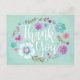 Modern Floral Script Thank You Postcard