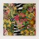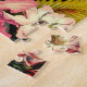 Pink and yellow flowers mingle with zebra print and southwest turquoise blue and yellow pattern create a challenging adult jigsaw puzzle.