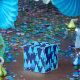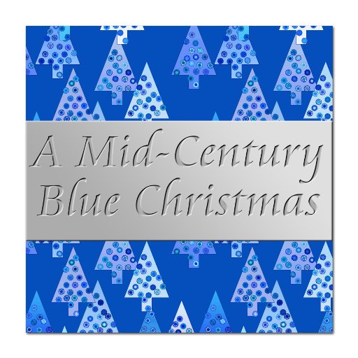 Mid-Century Modern, flower embellished, Christmas trees in a silky gradient - trees in shades of pale blue and aqua on a deep cobalt blue background