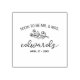 This "Save the Date" rubber stamp features a flower with couple surname and wedding date.