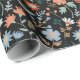 Modern Flowers Black Orange Blue Botanical Floral Wrapping Paper