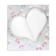 Modern and abstract paper heart illustration on a light bokeh background with falling red hearts.