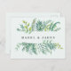 Modern foliage save the date postcard. Elegant watercolor foliage wedding suite.