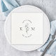 Custom-designed wedding paper napkins featuring modern foliage monogram design.