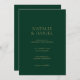 Plain white envelopes are included with paper invitations and will come to fit the invitation size you select. If you don’t need the envelopes, you may choose to not receive them by selecting the dropdown below "Envelopes" and choosing "None." If you’d like to have a design on your envelopes, you can browse all of these available envelopes to find the design that complements your Modern Forest Green Gold Chic Wedding Invitation.