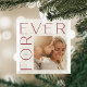 Celebrate your marriage or engagement with this elegant glass ornament featuring a favorite square wedding or engagement photo flanked by "FOREVER" in modern lettering. The year appears inside the letter "O."
