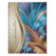 Modern Fractal Blue Gold Handwritten Name Notebook