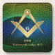 Stylish gold square and compass Masonic symbol personalized beverage coaster with a modern fractal background.