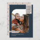 Modern Frame Year Review 1 Photo Christmas Navy Holiday Card