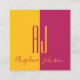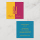 Modern Pink Peacock and Aspen Gold Trendy Monogram Square Business Card. Vibrant, trendy, contemporary and unique. All graphic elements are free for change, move or remove. Enjoy and make your best combination!