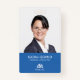 A modern business ID badge using a large photograph, name, occupation, as well as a business logo on the front and an ID bar code on the back (remove if not needed). Additional information can be added to the back side of this business ID badge. The background color can be personalized to any color that would suit your business.