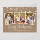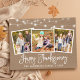 Modern Fun Calligraphy Script Happy Thanksgiving Family 3 Photo Kraft Postcard with String Lights