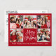 Modern Fun Calligraphy Red 5 Photo Christmas Postcard