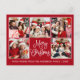 Modern Fun Calligraphy Script Merry Christmas 5 Photo Collage Holiday Postcard - Red Background