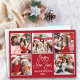 Modern Fun Calligraphy Script Happy New Year 5 Photo Collage Holiday Card - Red Background