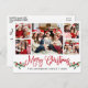 Modern Fun Calligraphy Red Christmas Holly 5 Photo Postcard