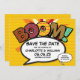 A fun, cool and trendy retro comic book pop art-inspired save the date invitation that puts the wham, zap, pow into your wedding date announcement. The reverse features a matching comic book polka dot pattern which you can replace with your own image or photo. Designed by Thisisnotme©