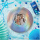 Modern creation with holographic colors and circular shapes that can be personalized with your text and photo.