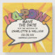 Personalize with your names and details to announce the date of your special event. Comic book pop art themed modern, fun retro design, perfect for weddings, bridal showers, baby showers, baptisms, engagement parties, anniversary celebrations, graduations, birthday party and other special events throughout the year! A cool, trendy and fun design that puts the wham zap pow into your day. Designed by Thisisnotme©