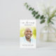 Modern memorial prayer card featuring a cherished photo of your loved one and the sentiment In Loving Memory in an elegant calligraphy script typography on the front and a suggested prayer or your custom text and optional cross on the back. These cards provide guests with a personal reminder of the one who has passed—something beautiful they can carry or keep close.