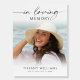 Honor your loved one’s memory with this elegant photo foam board sign, designed as a touching tribute for a funeral, memorial service or Celebration of Life. The sign features one large photo, the sentiment IN LOVING MEMORY in elegant script along with their name and life dates in a classic black and white style. Crafted on durable foam board, this memorial sign is both lightweight and easy to display on an easel, making it a meaningful focal point. OPTIONS: The sample is shown in a 18x24" size; other sizes are available (choose Custom Size for even borders by changing the height and width proportionately AFTER clicking the UNLOCK icon that looks like a chain link). You can also transfer the design to a poster, banner, tapestry backdrop, etc. or have the designer convert it to a digital download file for printing locally. ASSISTANCE: For help with design modification, resizing or transferring the design, contact the designer BEFORE ORDERING via the Zazzle Chat MESSAGE tab below or email makeitaboutyoustore@gmail.com.