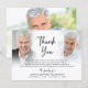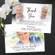 Modern Funeral Memorial 3 Photos Thank You Card. Send thanks for the kindness and compassion shown during your difficult time with this modern photo thank you card. The design features 3 pictures (two on the front and one on the back), stylish swash script typography and an editable message area for your custom text. The back side features a full bleed photo with FOREVER IN OUR HEARTS and name and dates as a keepsake. ASSISTANCE: For help with design modification, transferring the design to another product or if you would like coordinating items, contact the designer BEFORE ORDERING via the Zazzle Chat MESSAGE tab or email makeitaboutyoustore@gmail.com.