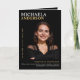 This elegant memorial program features a sophisticated black and gold design, creating a timeless tribute to a cherished loved one. The front cover showcases a beautiful portrait framed by refined typography, with the name and life dates elegantly displayed alongside the customizable phrase "Forever in our hearts." Inside, the program includes a well-organized order of service, a touching obituary section with space for a personal tribute, and a photo to honor their memory. The back cover features an acknowledgments section, expressing gratitude to those who offered support, along with a list of pallbearers and contributors. The classic color scheme and tasteful layout make this program a meaningful keepsake, offering comfort and remembrance to family and friends.