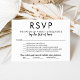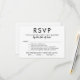 Bring laughter to your RSVP cards with this modern minimalist design featuring hilarious "bells" themed reply options and a meal selection section. The bold black-and-white layout pairs clean sans-serif typography with an elegant script reply-by date and a Name(s) line for easy guest identification. Below the five witty attendance options, guests can initial their entree preference from three customizable meal choices. All text is fully editable to personalize the humor and meal options for your celebration.