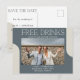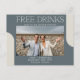This save-the-date postcard is perfect for the fun-loving couple eager to share their big day! Featuring a modern "Free Drinks (and We're Getting Married)" design, this customizable card includes your photo, names, wedding date, and location.