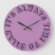 A modern and simple pink wall clock with the funny text "It's always time to relax".