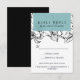Designed to match our brand new Modern Garden floral wedding collection for 2019, this Elegant and contemporary wedding Rsvp feature a background of outlined flowers in white and black. Your wedding details are displayed in white against a Turquoise rectangular element. A modern yet timeless design that's perfect for formal celebration in any season of the year.