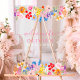 Elegant modern spring summer hand painted flowers watercolor with pretty garden wildflowers and brush script bridal shower welcome transparent sign with a modern calligraphy typography with pink, white, purple, blue, red and orange flowers with greenery.