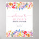 Elegant modern spring summer hand painted flowers watercolor with pretty garden wildflowers and brush script bridal shower welcome sign with a modern calligraphy typography with pink, white, purple, blue, red and orange flowers with greenery.
