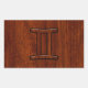 Modern Gemini Zodiac Symbol on Mahogany like print Rectangular Sticker