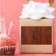 A Gemini zodiac symbol on a brown mahogany wood grain like print background. A classic rich style design for a great custom birthday gift idea for him.