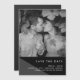 This modern save the date magnetic card features your photo, with a black and dark gray simple geometric design.