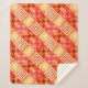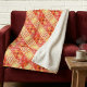 A unique sherpa blanket featuring a geometric abstract pattern in warm terra cotta and oranges with ivory yellow. Beautiful to create a cozy and warm atmosphere.