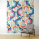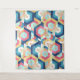 A summer vibrant geometric pattern, composed with hexagon, squares, cubes, triangles lines and stripes shapes and gold strokes. This abstract graphic pattern illustration, symmetric, creative, fashion trend decorative design is great for home decor and every day wear. Filled with mustard yellow, iced mango, living coral, blueberry pancake, carnival glass, aqua blue, dark blue and white bright happy colors. A stylish, trendy, cheerful, happy design, original artwork image.