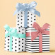 Modern geometric black and white wrapping paper minimalist sheets in 3 designs: stars, dots, and stripes. Ideal gift wrapping presents for a birthday.