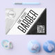 Modern line futuristic style professional template inspired by barber and hairdresser services. With spaces for logo and QR code.