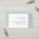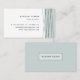 Modern and elegant business cards feature a right side border of crisscrossing geometric lines in crisp black with a colorblock underlayer of sheer grayed jade green. Add your name and title/occupation/company and three lines of contact information. Cards reverse to solid icy pastel aqua with your name or company name highlighted in the center.