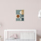 A sleek modern abstract wall art print featuring geometric circles and squares in muted shades of blue, beige, and terracotta. The balanced composition and clean design bring a sophisticated, minimal aesthetic to any living space, office, or gallery wall.
