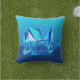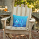 Mid-Century Modern PH - geometric digital painting of a clipper ship in shades of ocean blue, from light aqua to deep cobalt outdoor pillow