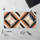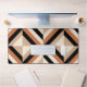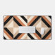 Modern desk mat design featuring geometric stripes in warm brown tones with a contrast of black.