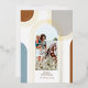 Modern geometric 1 photo golden arch holiday card. The design features an overlapping golden arch pattern with one arch photo frame. Designed by Moodthology Papery.