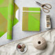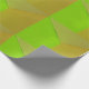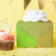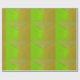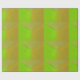 Y-shaped geometric design where lines split the square into three areas. Each area with a slightly different color, all in green to yellow tones. The color scheme stands out as fresh, a touch of cubism, somehow etnic, a tad psychedelic, and unique.