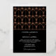 This modern and stylish black and rose gold wedding invitation features a modern geometric pattern in REAL ROSE GOLD, with modern typography over a minimalist yet modern black background.